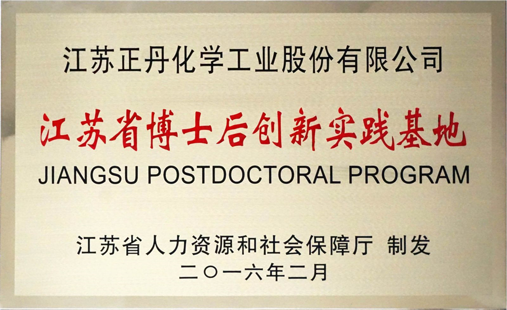 正丹化學(xué)獲江蘇省人力資源和社會(huì)保障廳批準(zhǔn)設(shè)立省博士后創(chuàng)新實(shí)踐基地。