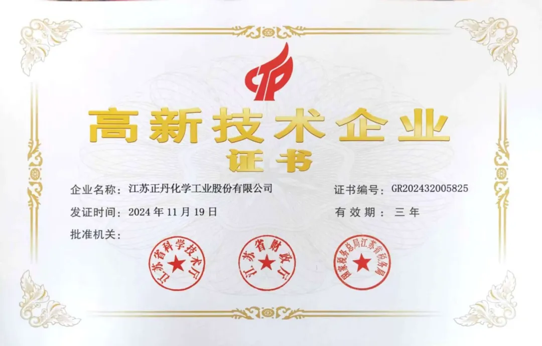 近日,江蘇正丹化學工業(yè)股份有限公司成功通過國家“高新技術(shù)企業(yè)”認定,本次系公司原高新技術(shù)企業(yè)證書有效期滿后再次獲得高新技術(shù)企業(yè)認定!這一榮譽不僅是對公司多年來在科技創(chuàng)新領域不懈努力的肯定,更是對其未來發(fā)展?jié)摿Φ母叨日J可。