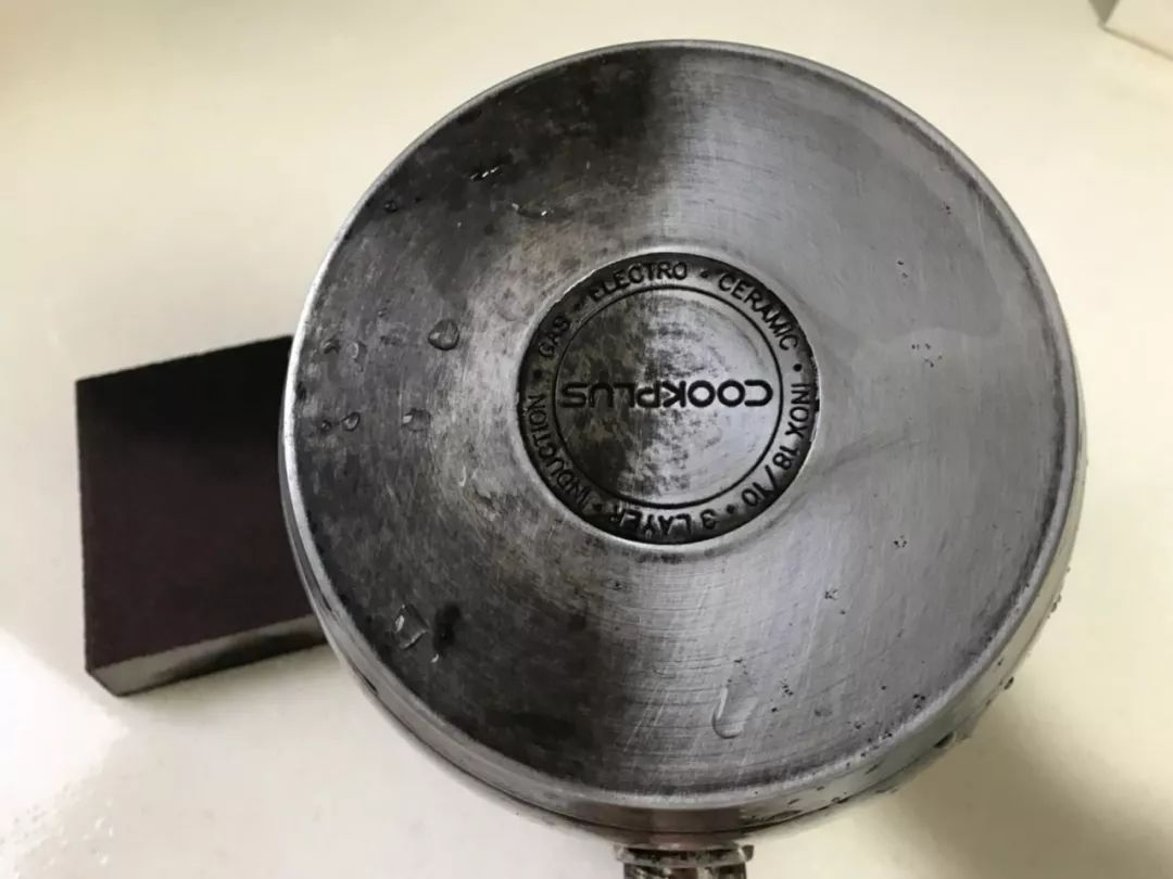 2.用金剛砂海綿擦試金屬鍋需要去銹的地方,效果會(huì)拉桿見影,如果遇到有油漬的地方,可以配合著清潔劑來使用,效果會(huì)更佳;